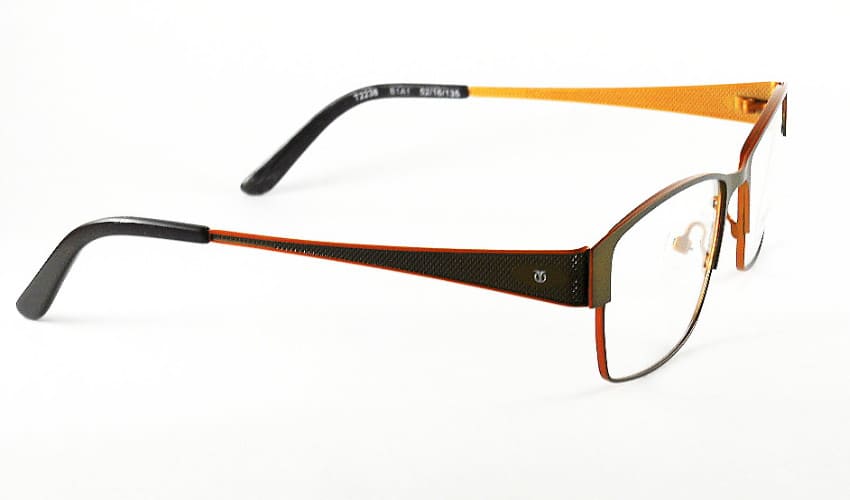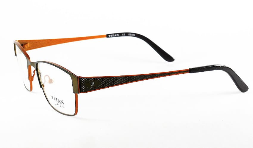 titan full rim metal greenish copper unisex rectangular eyeglass with metal body and designer metal temple.